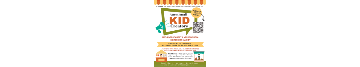 The Autumnfest Craft & Vendor Show is growing in 2025 with the exciting addition of a Kid Makers Market! This brand-new feature gives young people in our community the chance to showcase and sell their homemade, one-of-a-kind creations—from crafts and baked goods to art, sewing, woodworking, and more.